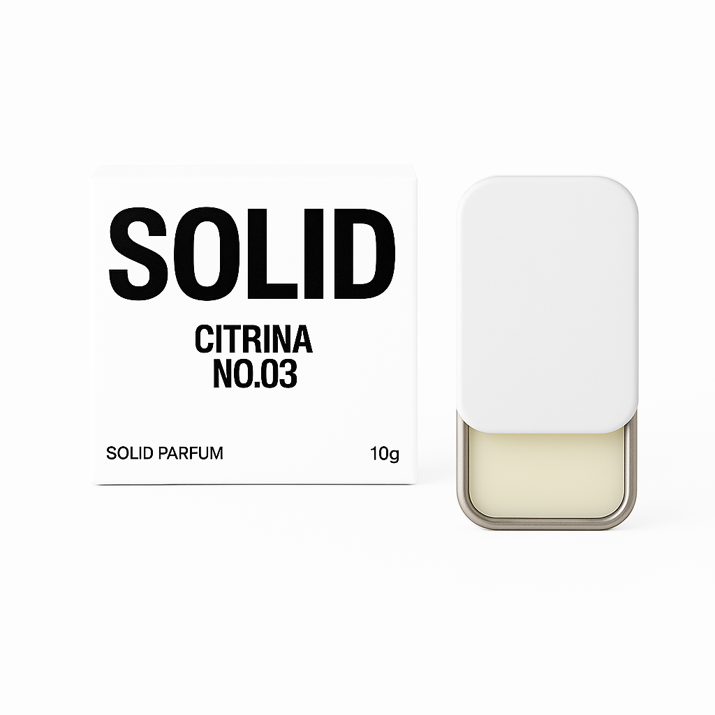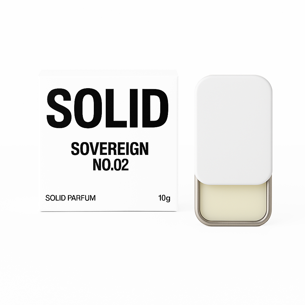 Solid is a compact, travel-ready fragrance balm housed in a sleek, refillable metal case.