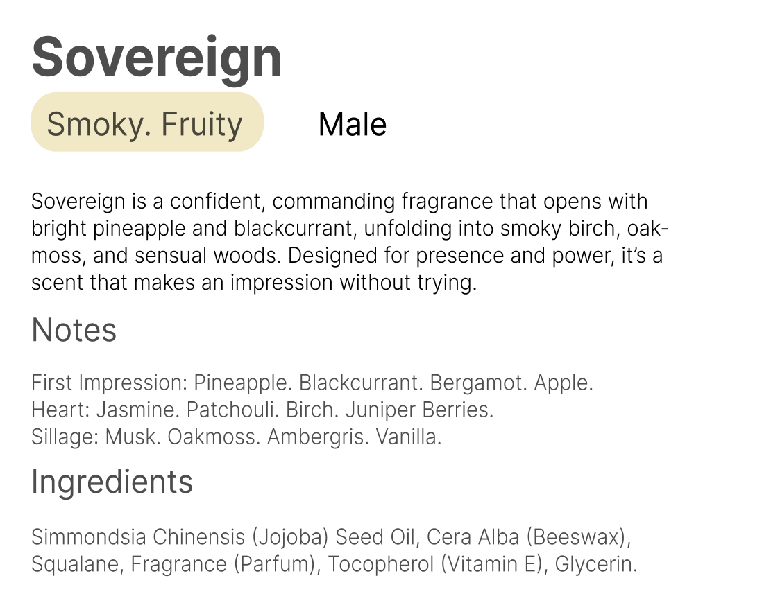 Simmondsia Chinensis (Jojoba) Seed Oil, Cera Alba (Beeswax), Squalane, Fragrance (Parfum), Tocopherol (Vitamin E), Glycerin.